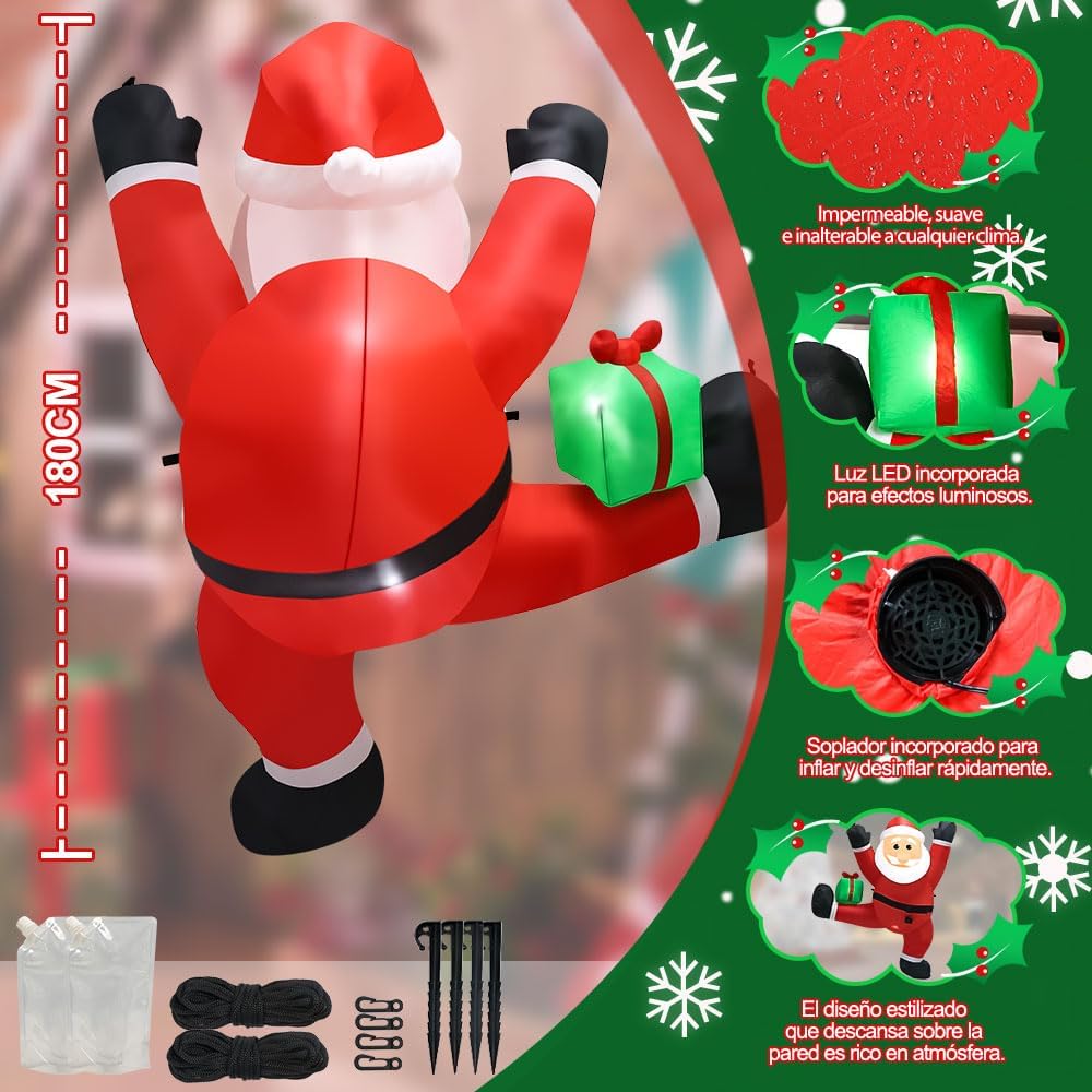 🎅 Santa Claus Inflable Escalador con Luces LED 1.8 m